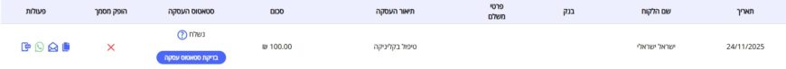 מצב א'- הכסף התקבל בחשבון וחשבונית הופקה אוטומטית. המצב המושלם 🙂 זה אומר שהעסקה בוצעה בהצלחה ותראו אותה בסטאטוס "הצלחה" .